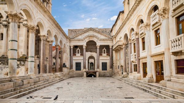 アドリア海沿岸の港町スプリット。ローマ皇帝ディオクレティアヌスが3世紀に建設した宮殿がそのまま旧市街になったという珍しい起源を持っています。ローマ時代の机、皇帝の像などをみることができます。