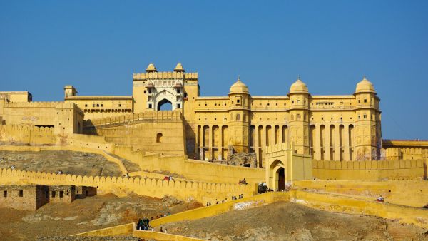 ジャイプール近郊の丘の上に建つマハラジャの宮殿で、16世紀から約150年かけて建設された。ヒンドゥーとムガル様式が融合した美しい建築で、特に「鏡の間」は数千枚の鏡で装飾された豪華絢爛な部屋として有名。象のタクシーで城まで登ることができ、城からはアラヴァリ山脈の絶景を望める。