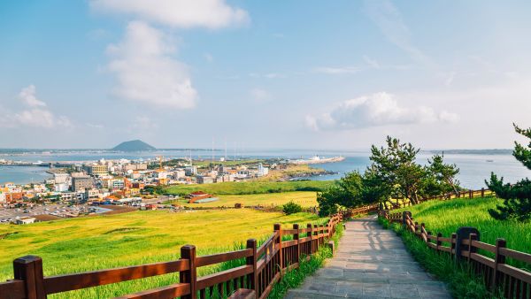韓国最南端に位置する火山島で、中央には韓国最高峰の漢拏山がそびえている。世界自然遺産に登録された美しい自然景観と温暖な気候から「韓国のハワイ」と呼ばれ、年間を通して多くの観光客が訪れる。城山日出峰や万丈窟などの火山地形、美しい海岸線など、魅力溢れる島。