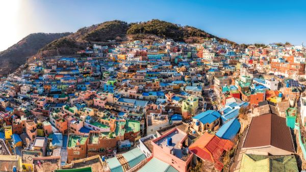 釜山の山腹に階段状に建設されたカラフルな住宅街で、「韓国のマチュピチュ」と呼ばれる人気観光地。朝鮮戦争当時に避難民が集住して形成された街が、2009年から始まった都市再生プロジェクトにより芸術村として生まれ変わった。色とりどりの家屋と路地に描かれたストリートアートなどフォトスポットが点在し、釜山港と市街地を一望できる絶景も楽しめる。