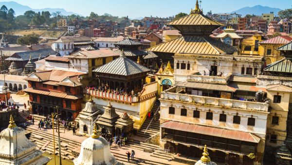 カトマンズ東部のバグマティ川沿いに建つヒンドゥー教の聖地で、シヴァ神を祀るネパール最大の寺院。5世紀頃の創建とされ、ヒンドゥー教徒の巡礼者が訪れる。ここは、ヒンドゥー教の死生観を間近に感じることができる神聖な場所。本塔や寺院はヒンドゥー教徒以外は立入禁止だが、対岸から美しい寺院建築を眺められる。毎年2-3月のシヴァラトリ祭には数十万人の信者が集まり、盛大な宗教祭典が行われる。