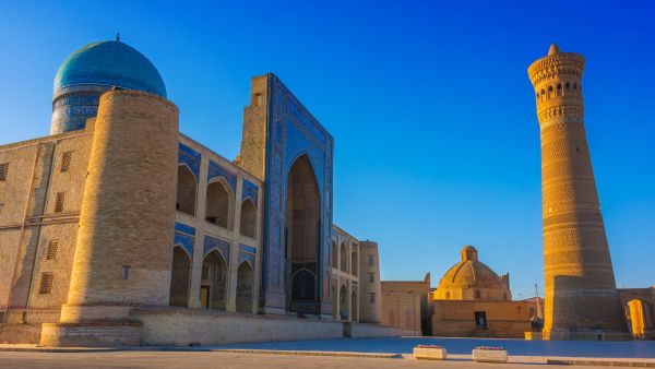 ブハラの中心部にあるカラン・ミナレット、カラン・モスク、ミル・アラブ・メドレセからなる建築複合体。12世紀に建設された高さ47mのカラン・ミナレットは「ブハラの象徴」として親しまれ、数百年間この地域で最も高い建造物であった。隣接するカラン・モスクは中央アジア最大級の金曜モスクで、青いドームと精美な装飾が訪問者を魅了する。
